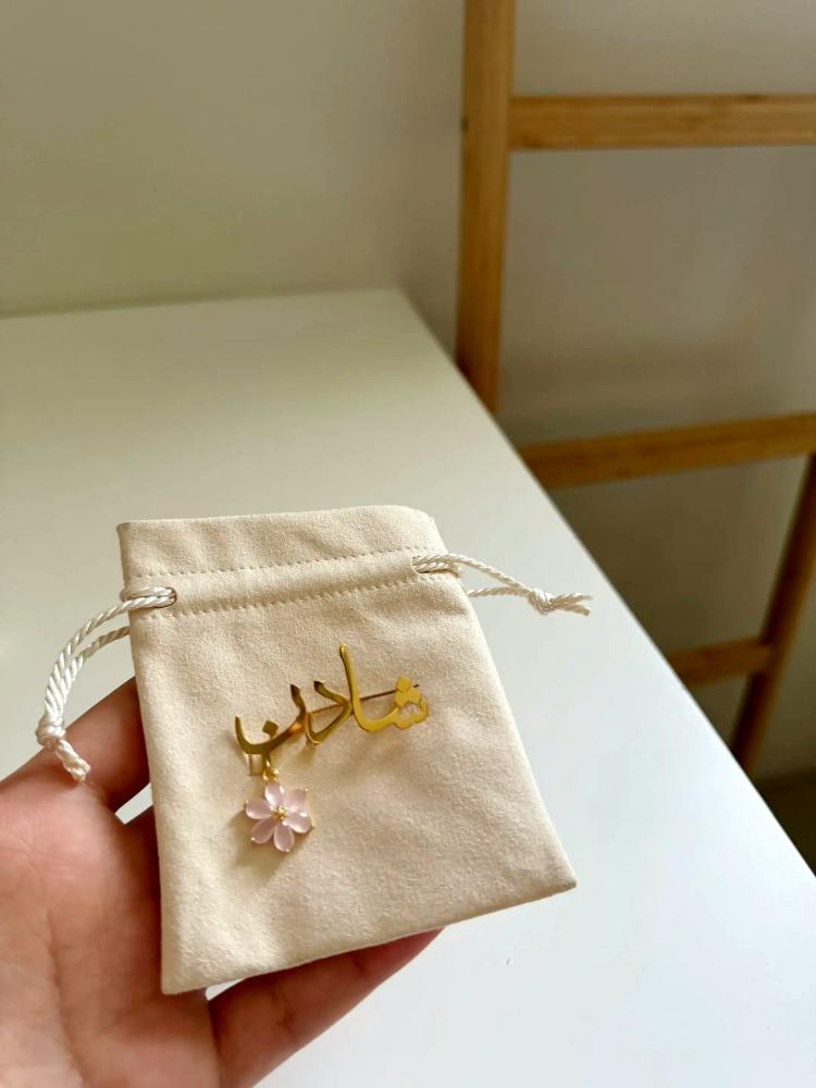 3- حجم البروش ٤سم وقد يزيد او ينقص سانتي حسب حروف الاسم ونوع الخط